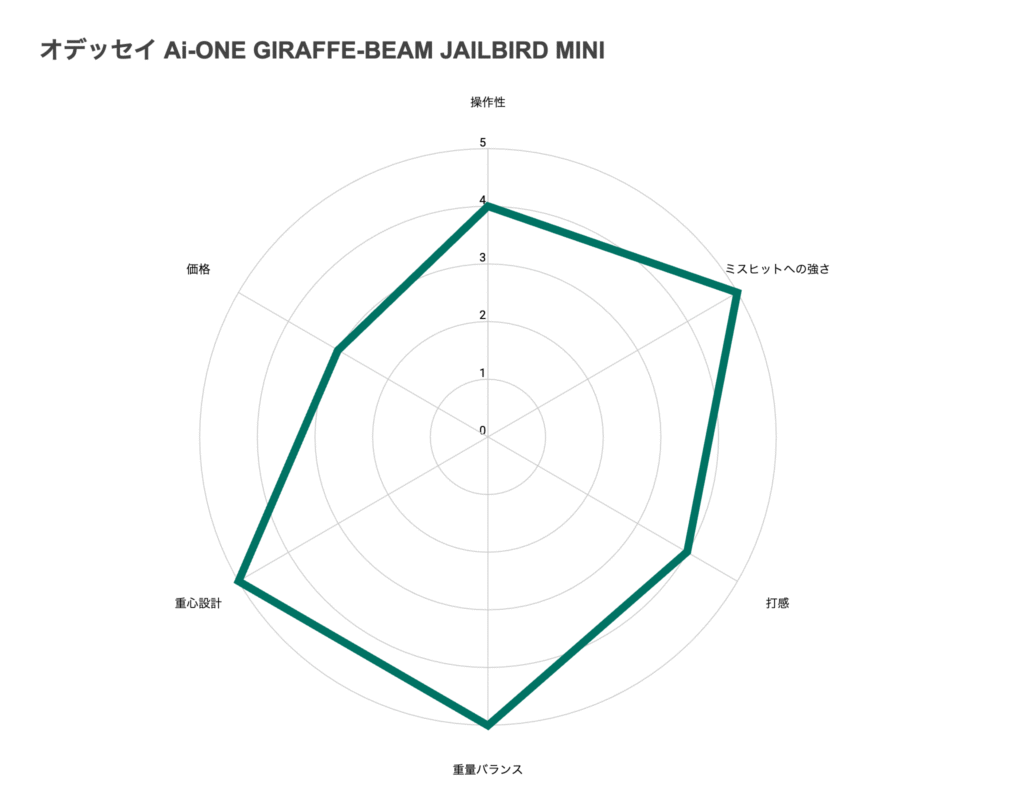 総じてAi-ONE GIRAFFE-BEAM JAILBIRD MINIは、直進安定性とミスヒットの強さにおいて競合モデルの中でもトップクラスであり、プロの使用例も出始めている注目の一品と言えます。