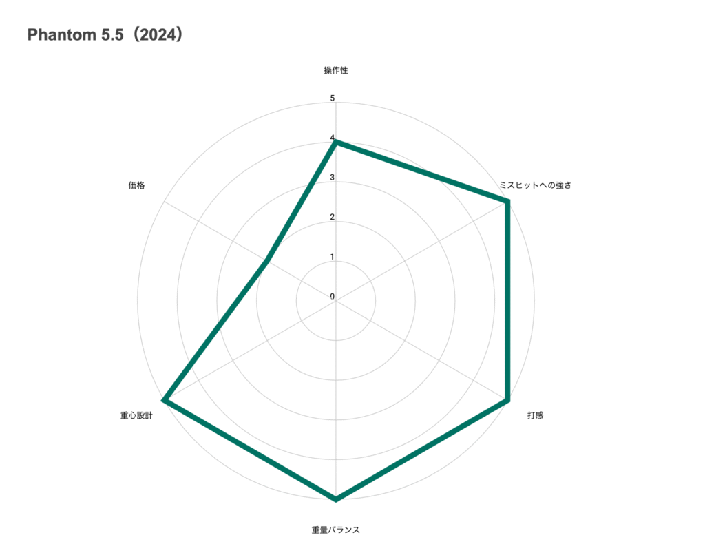つまり、Phantom 5.5は「安定性を極めながらも、操作性やフィーリングの良さを一切妥協したくない」という、最も要求の厳しいゴルファーのために設計された、プレミアムな存在だと言えます。