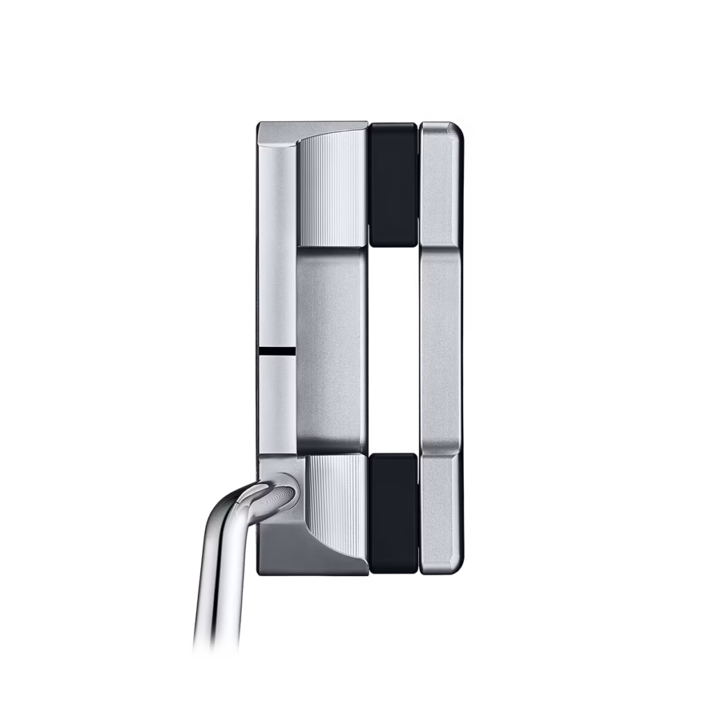 これにより、パターヘッドの慣性モーメント(MOI)が向上しています。慣性モーメントが高いということは、たとえボールが芯をわずかに外れた場所(トウ側やヒール側)に当たったとしても、ヘッドがねじれてしまうのを強力に抑え込む力があるということです。