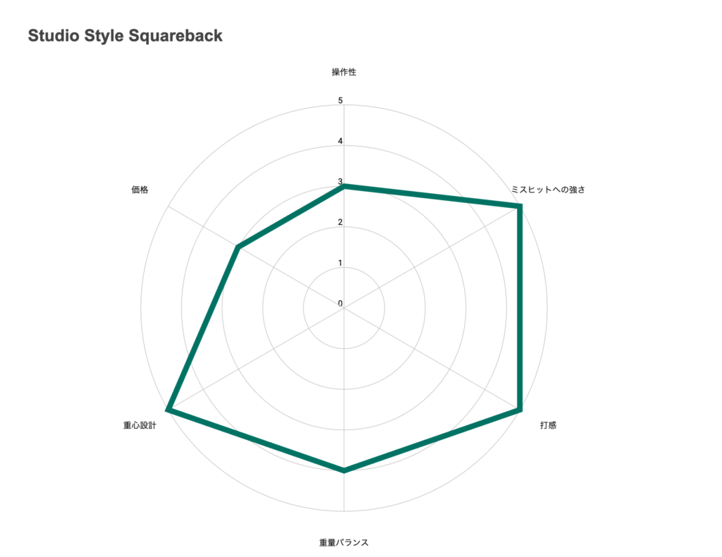 Studio Style Squareback 性能レーダーチャート評価(5段階:高いほど優れている)