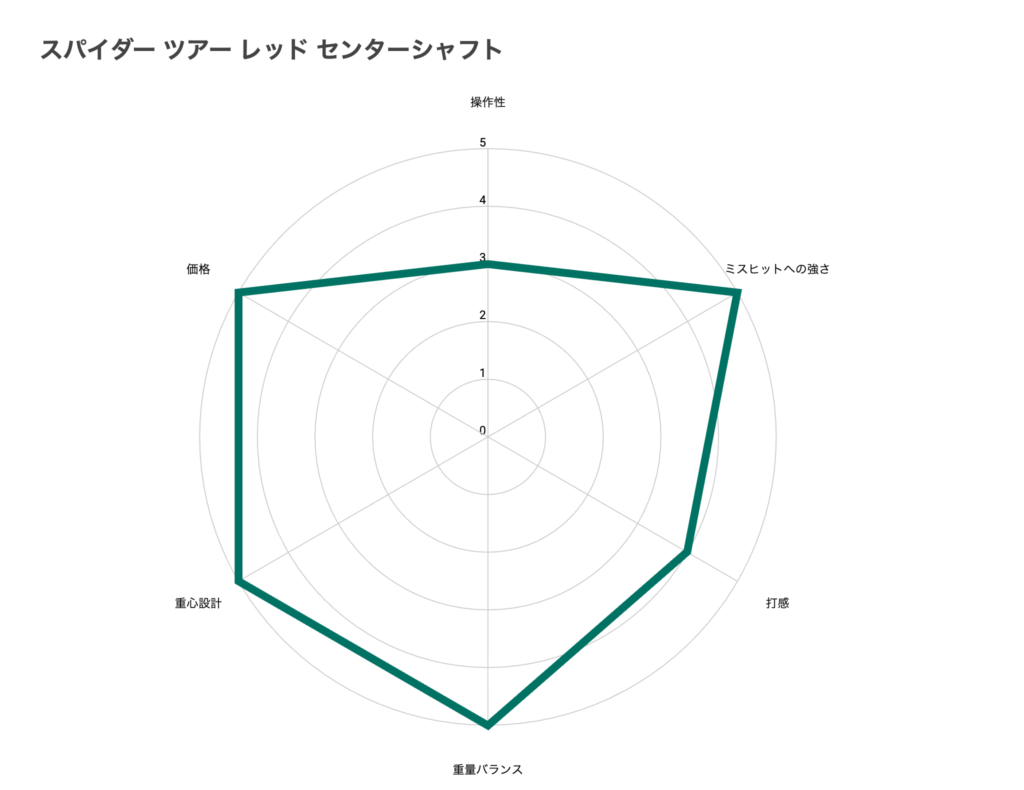 スパイダー ツアー レッド センターシャフト:性能評価サマリー(5点満点)